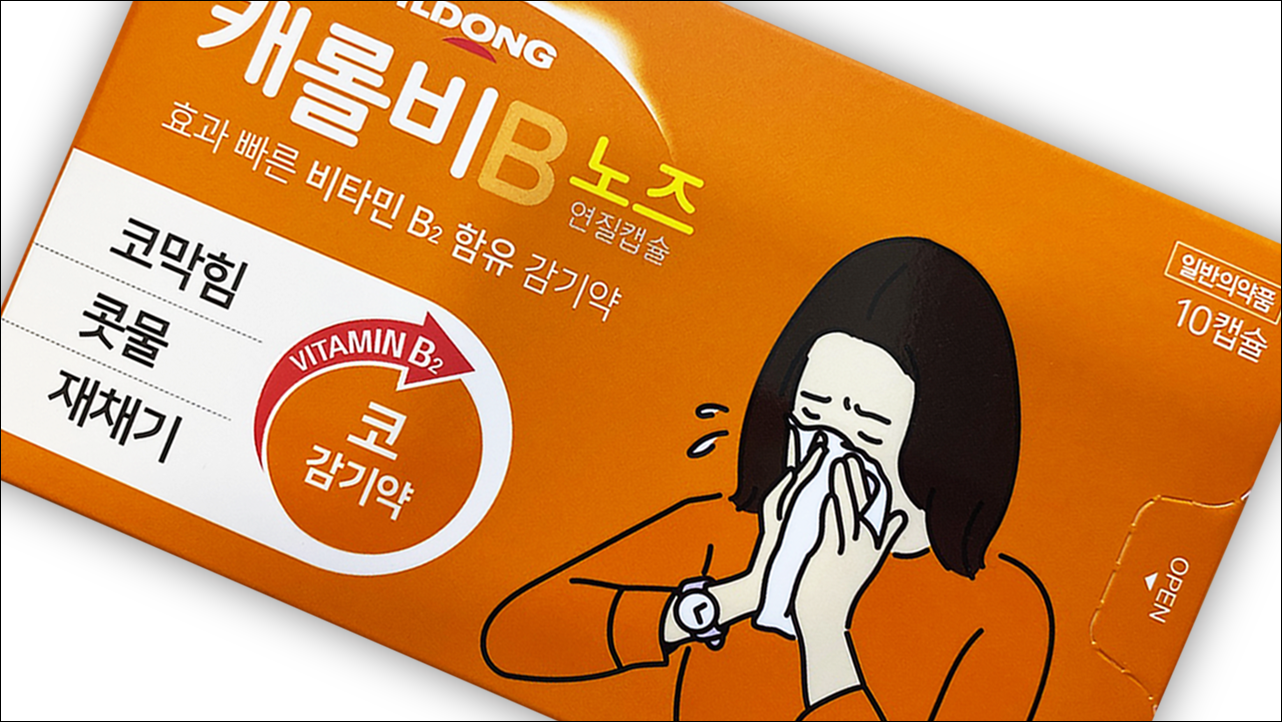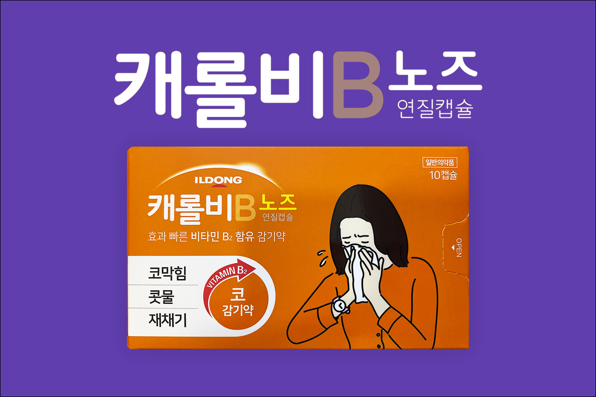 코감기약 캐롤비노즈 연질캡슐(Carol-B Nose Soft Cap.)에 대해서 알아보겠습니다. 콧물, 코막힘, 재채기 등의 증상에 등에 효과 빠른 비타민 B2가 함유된 코감기약으로 의사의 처방전이 없어도 약국에서 구입이 가능한 일반 의약품입니다. 오한, 발열, 콧물, 코막힘 등의 감기 증상을 개선하는 약입니다.