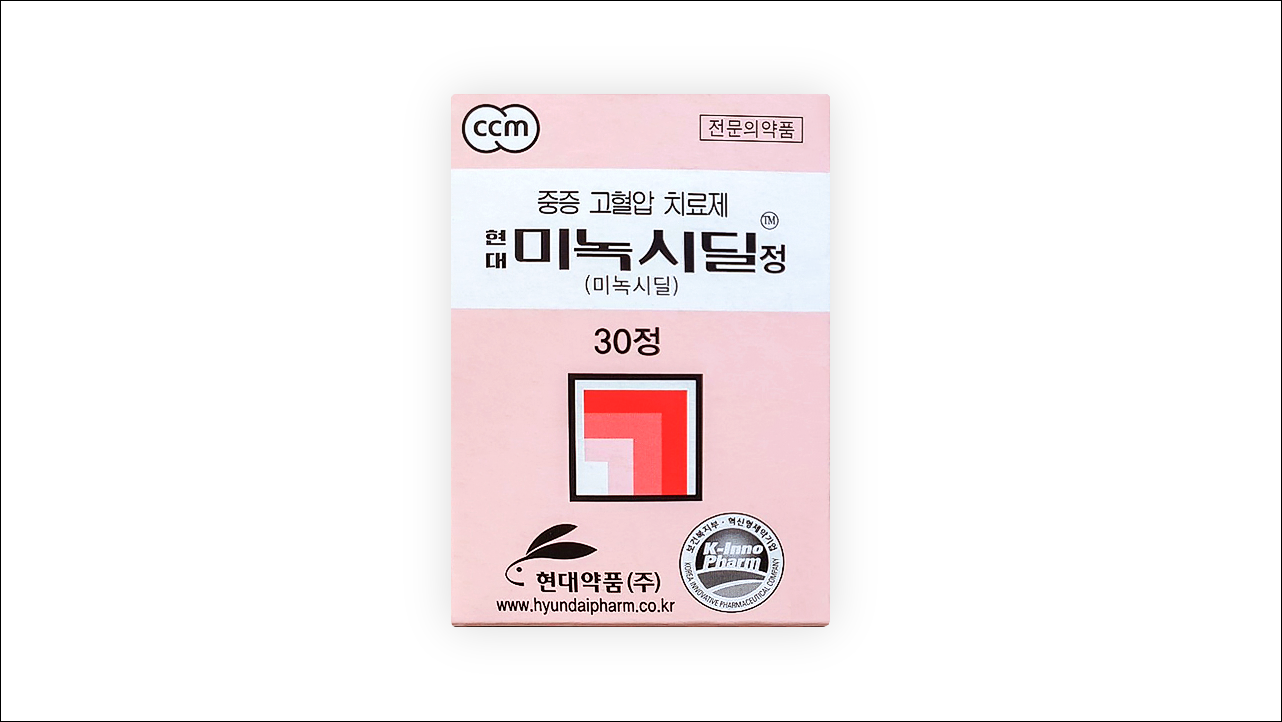 고혈압약 현대 미녹시딜정(Minoxidil Tab. Hyundai)에 대해서 알아보겠습니다. 혈압강하제로 의사의 처방전이 있어야 약국에서 구입이 가능한 전문 의약품입니다. 혈관을 확장하여 말초혈관저항을 감소시킴으로써 혈압 상승을 억제하는 약입니다. 고혈압약이지만 탈모치료에 사용되기도 합니다.