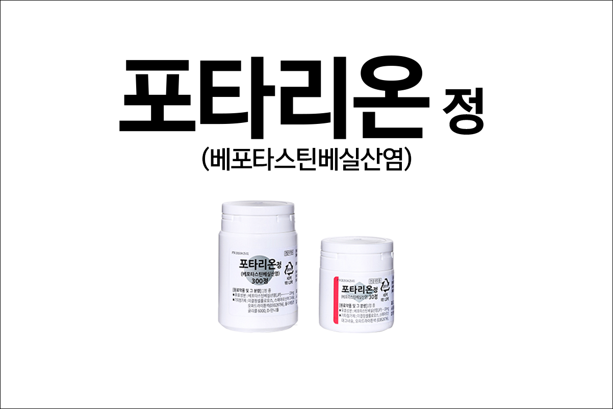 알레르기약 포타리온정(Potalion Tab.)에 대해서 알아보겠습니다. 2세대 항히스타민제로 의사의 처방전이 있어야 약국에서 구입이 가능한 전문 의약품입니다. 알레르기유발 물질의 작용을 차단하여 각종 알레르기 증상을 개선하는 약입니다.