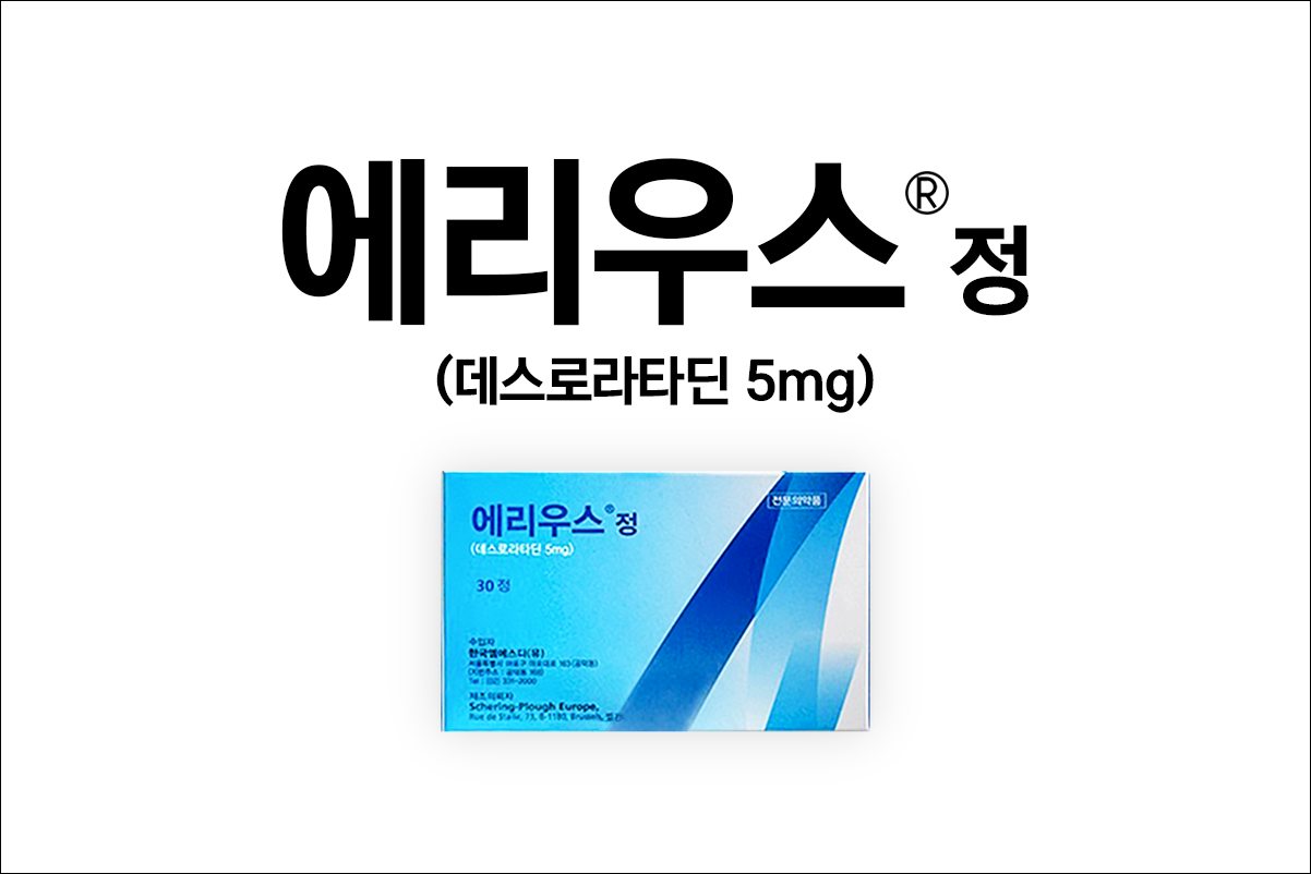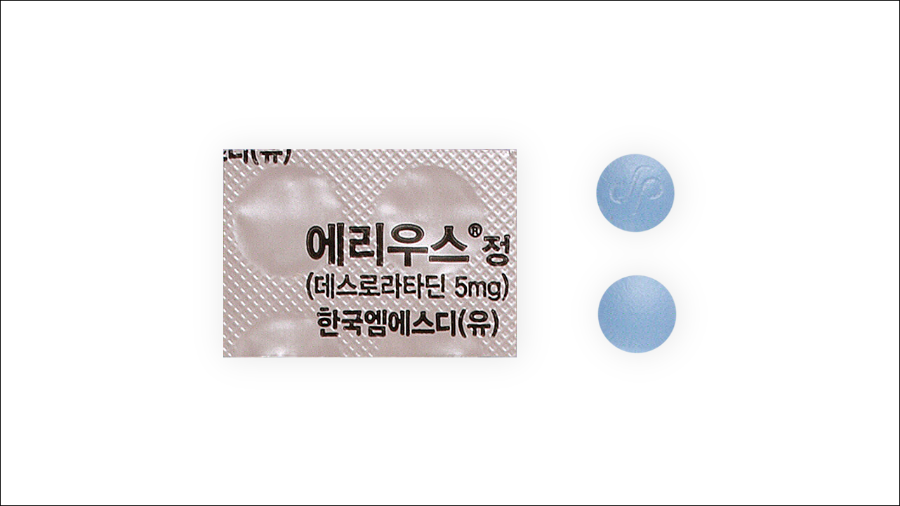 에리우스정에는 데스로라타딘 5mg이 함유되어 있습니다. 데스로라타딘은 제일형 히스타민 수용체와 무스카린 수용체에 길항하는 3세대 항히스타민제로 로라타딘의 활성 대사체입니다. 알레르기성 비염 및 콧물, 재채기, 가려움, 두드러기 반응 등 피부질환을 치료에 사용합니다.