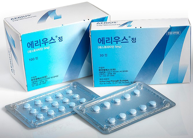 알레르기 질환 치료제 에리우스정(Aerius Tab.)에 대해서 알아보겠습니다. 3세대 항히스타민제로 의사의 처방전이 있어야 약국에서 구입이 가능한 전문 의약품입니다. 알레르기유발 물질의 작용을 차단하여 각종 알레르기 증상을 개선하는 약입니다.