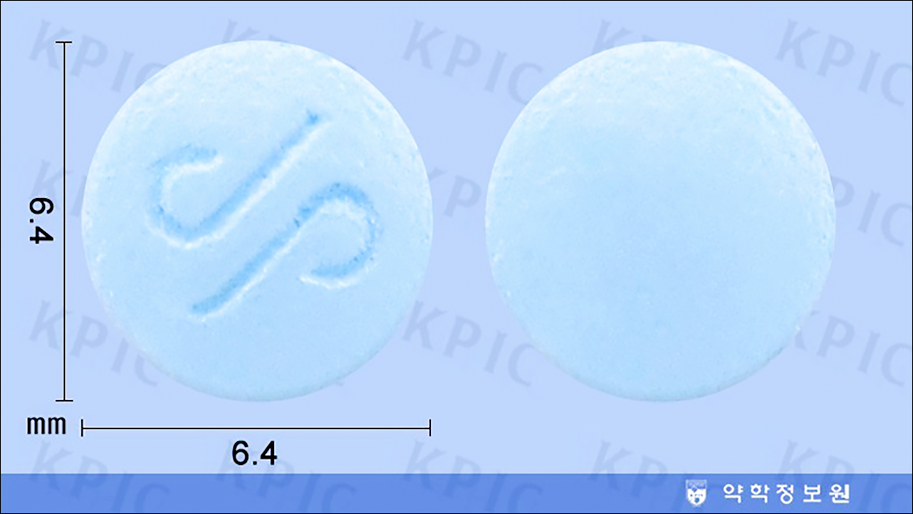 | 성상 | 연한 청색의 양면이 볼록한 원형 정제 |