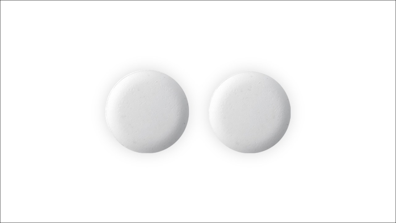 | 성상 | 흰색의 가운데가 볼록한 원형의 츄어블 정 |