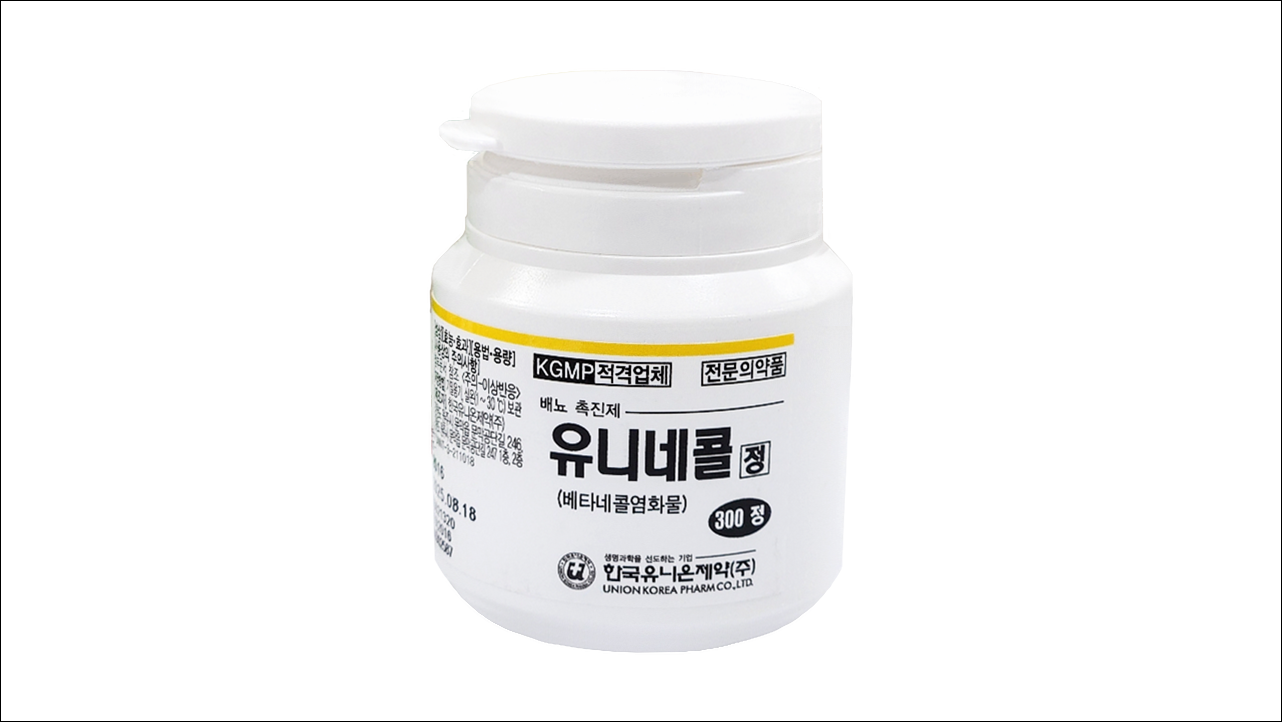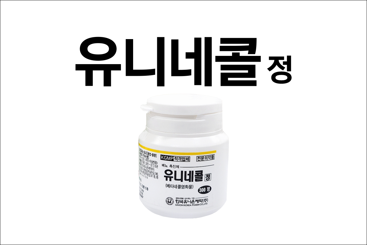 배뇨장애 치료제 유니네콜정(Uninechol Tab.)에 대해서 알아보겠습니다. 배뇨 촉진제로 의사의 처방전이 있어야 약국에서 구입이 가능한 전문 의약품입니다. 방광의 수축력을 증가시켜 뇨저류 증상을 개선하고, 배뇨를 원활하게 해주는 약입니다.