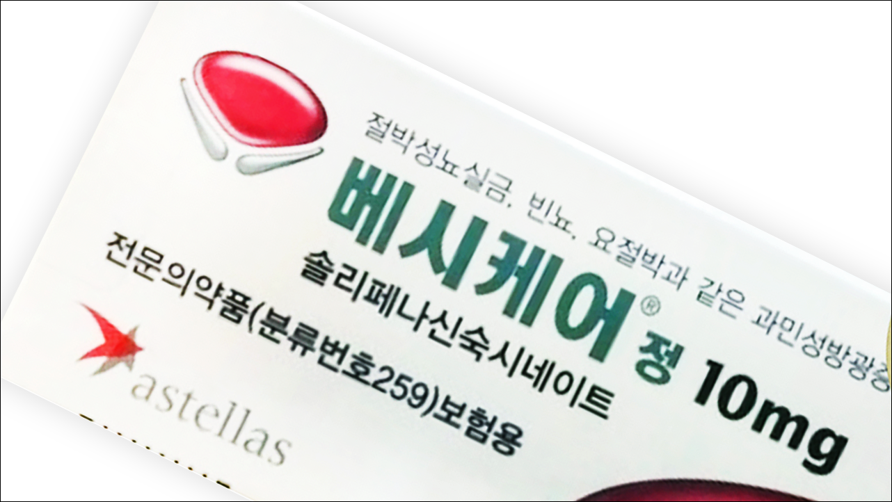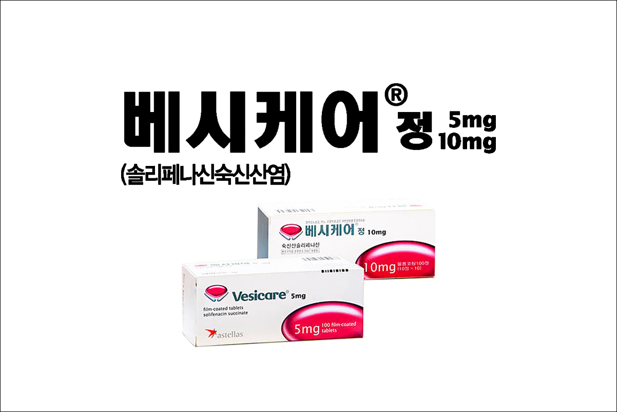 빈뇨, 절박뇨 요실금 치료제 베시케어정 5mg, 10mg(Vesicare Tab. 5mg, 10mg)에 대해서 알아보겠습니다. 요실금 등 배뇨장애 치료제(과민성방광증상 치료)로 의사의 처방전이 있어야 약국에서 구입이 가능한 전문 의약품입니다. 방광 평활근의 긴장을 감소시킴으로써 빈뇨, 절박뇨 등의 증상을 개선해 주는 약입니다.