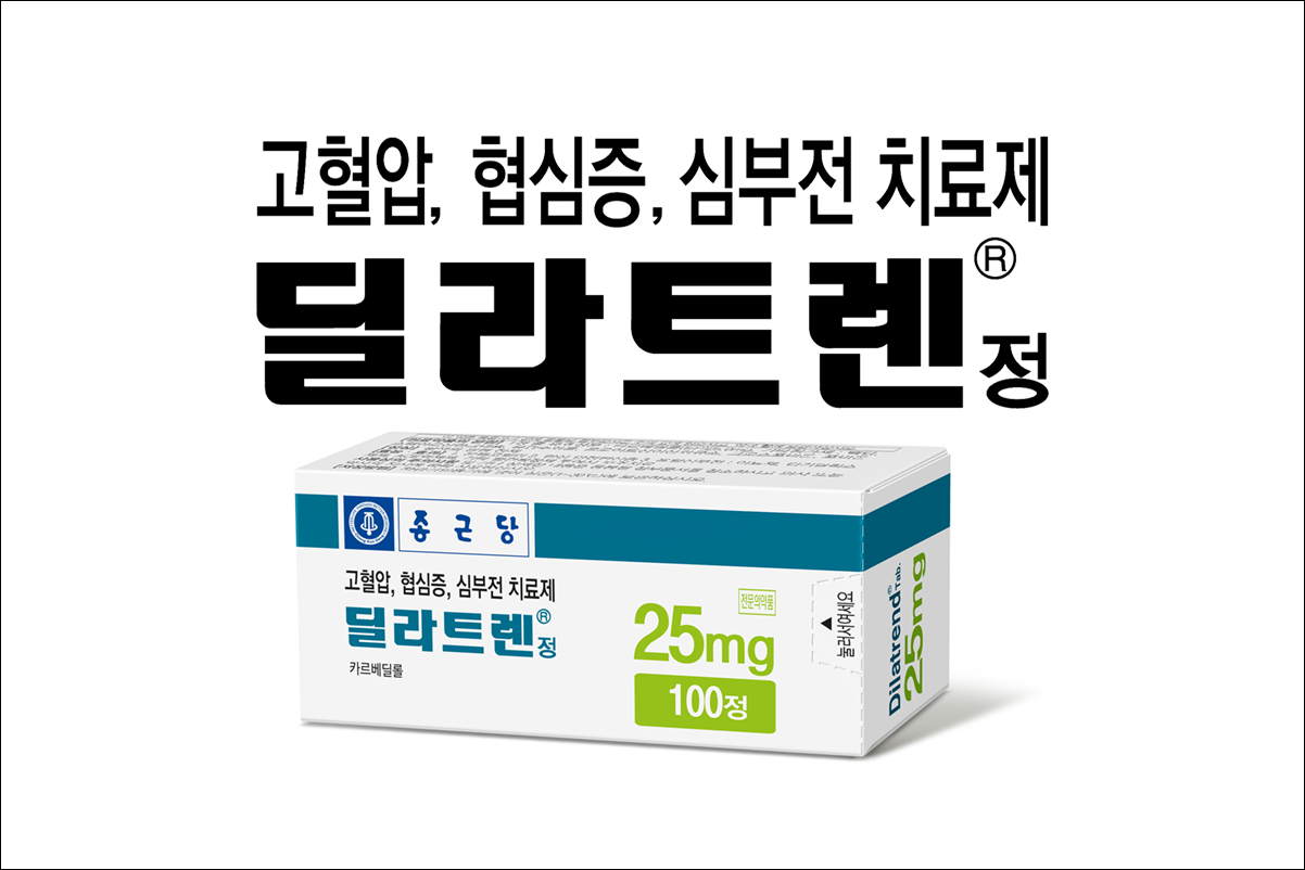 고혈압약 딜라트렌정 25mg(Dilatrend Tab. 25mg)에 대해서 알아보겠습니다. 혈압강하제로 의사의 처방전이 있어야 약국에서 구입이 가능한 전문 의약품입니다. 심박동수를 감소시키고 혈관확장효과가 있어 혈압을 낮추고 심장부담을 감소시키는 약입니다.