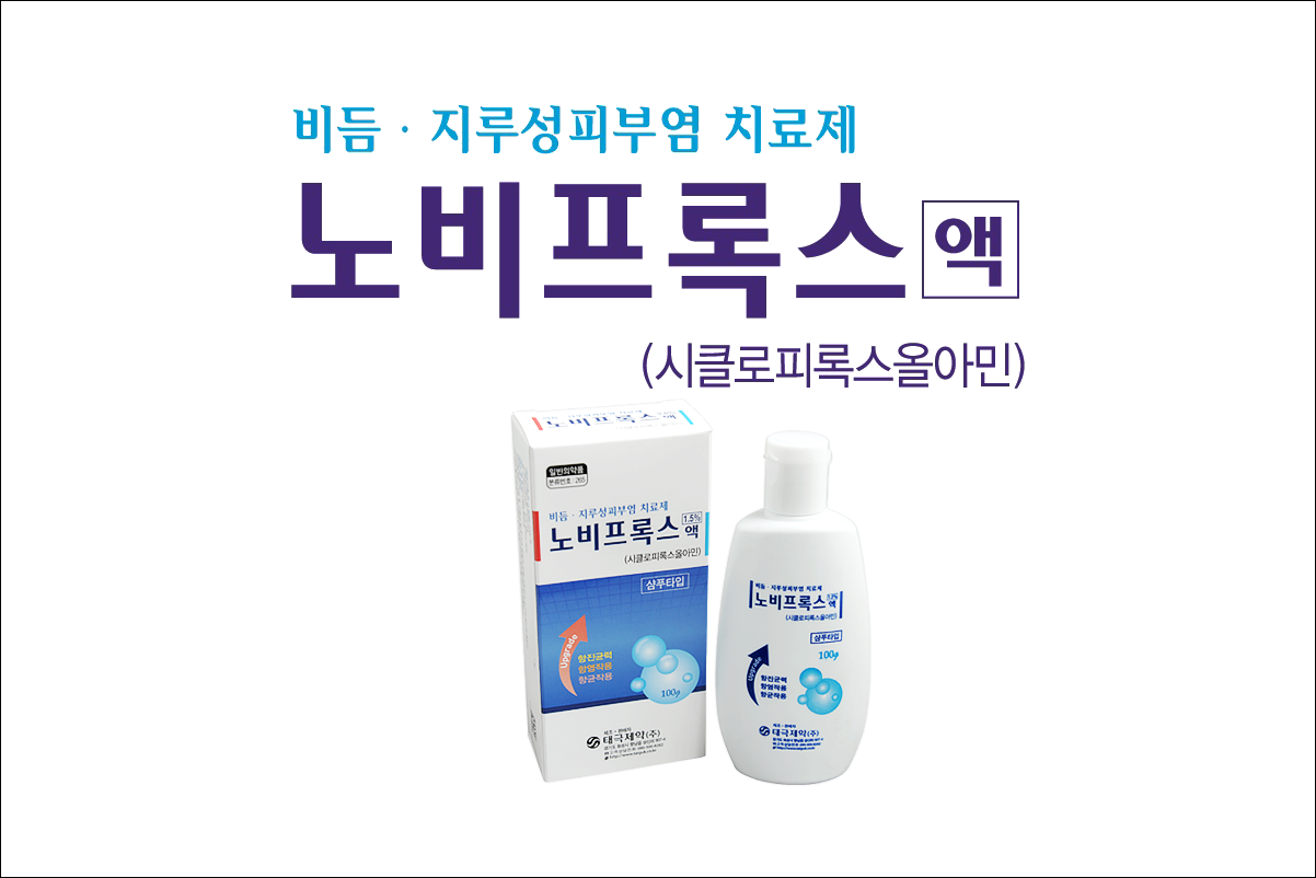 비듬, 지루성피부염 치료제 노비프록스 액(Nobiprox Solution)에 대해서 알아보겠습니다. 곰팡이 감염증을 치료하는 항균제로 의사의 처방전이 없어도 약국에서 구입이 가능한 일반 의약품입니다. 항진균 작용을 나타냄으로써 지루성피부염을 치료하는 약입니다.