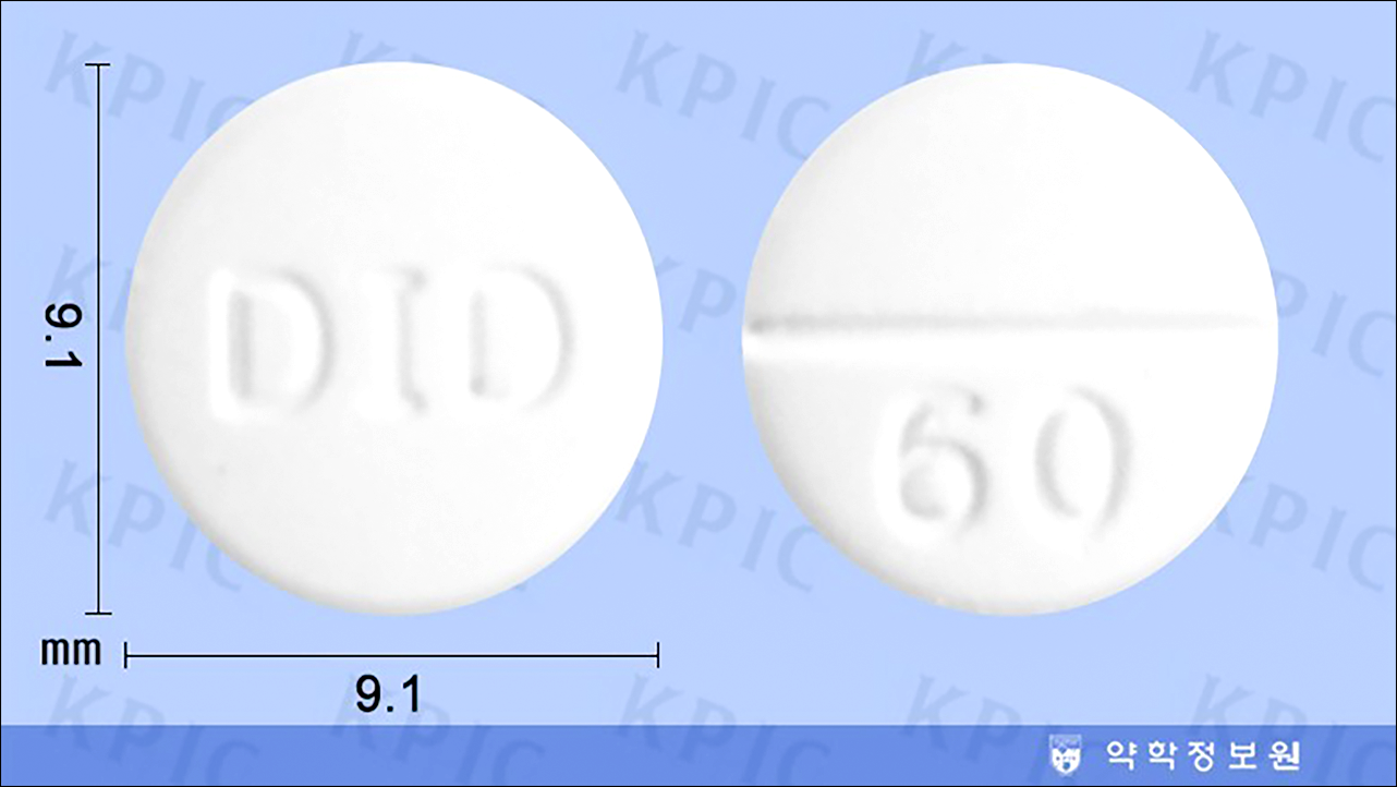 | 성상 | 흰색의 원형 필름코팅정제 |