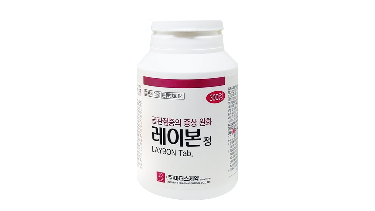 관절염약 레이본정(Laybon Tab.)에 대해서 알아보겠습니다. 생약성분의 소염진통제로 의사의 처방전이 있어야 약국에서 구입이 가능한 전문 의약품입니다. 염증성 매개인자를 억제하여 항염증 효과 및 연골보호, 통증 개선효과를 나타내는 생약제제입니다.