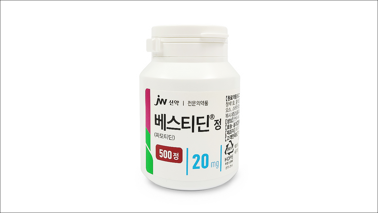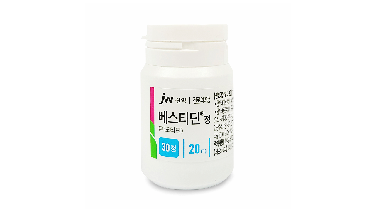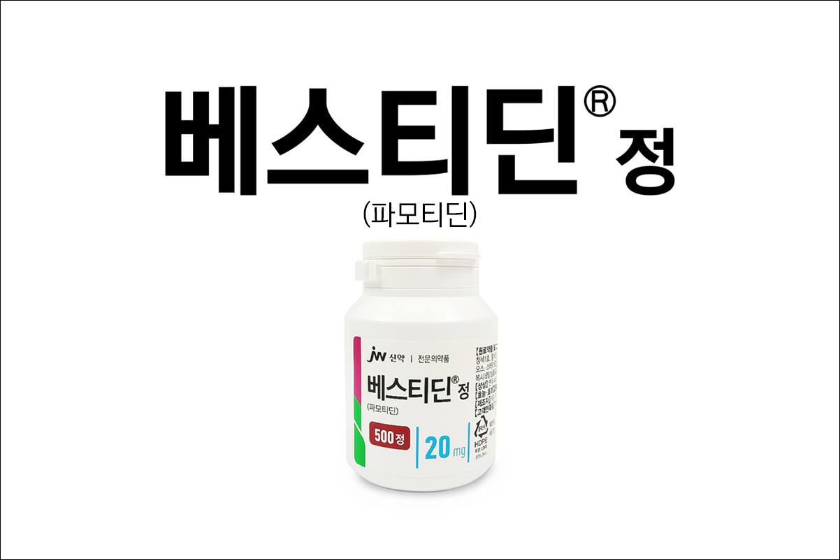 위염, 위궤양 약 베스티딘 정 20mg(Bestidine Tab. 20mg)에 대해서 알아보겠습니다. 위산분비 억제제로 의사의 처방전이 있어야 약국에서 구입이 가능한 전문 의약품입니다. 위산 분비를 감소시킴으로써 위산분비 과다로 인한 각종 소화기 증상을 개선하는 약입니다.