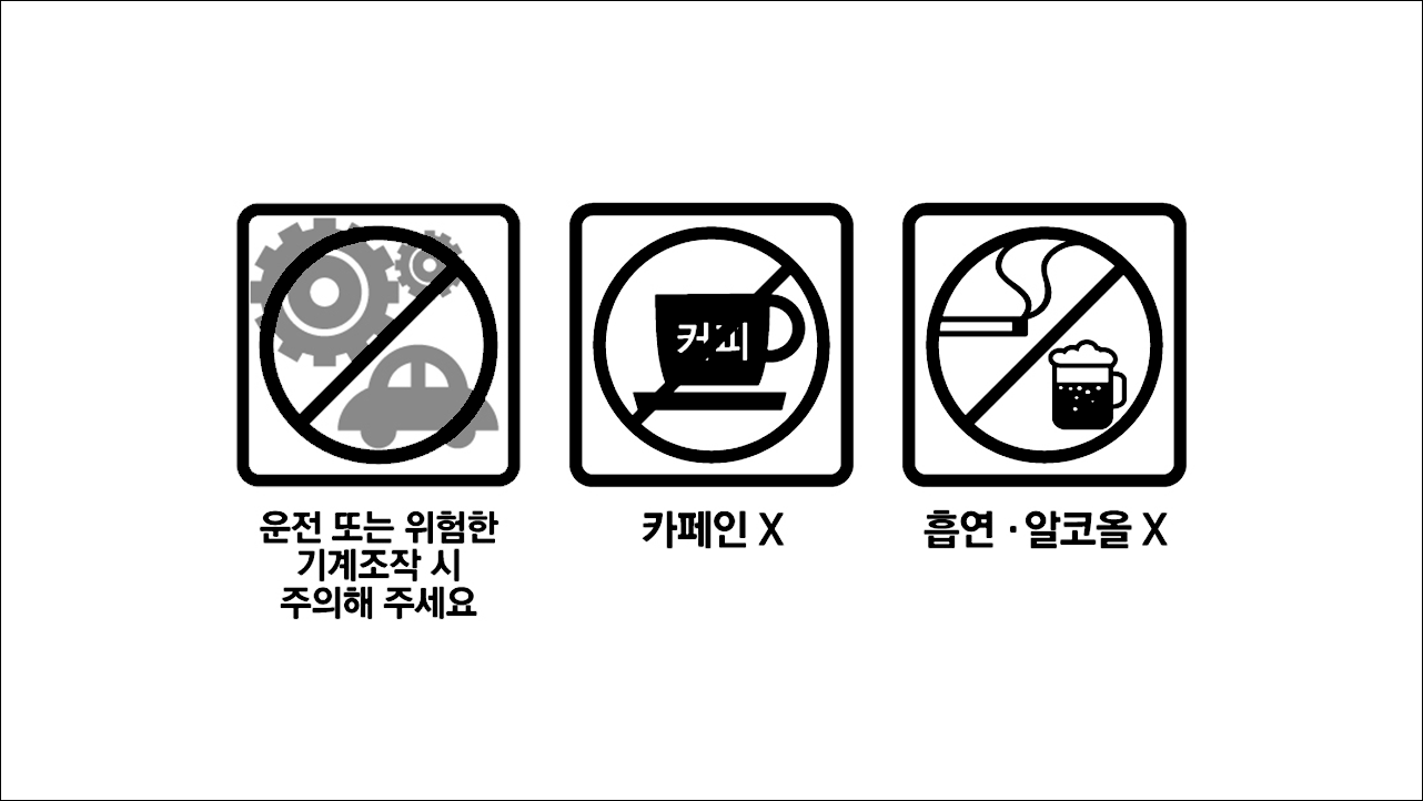 1. 어지럽거나 졸음이 올 수 있으므로 운전, 위험한 기계조작 시 주의합니다.