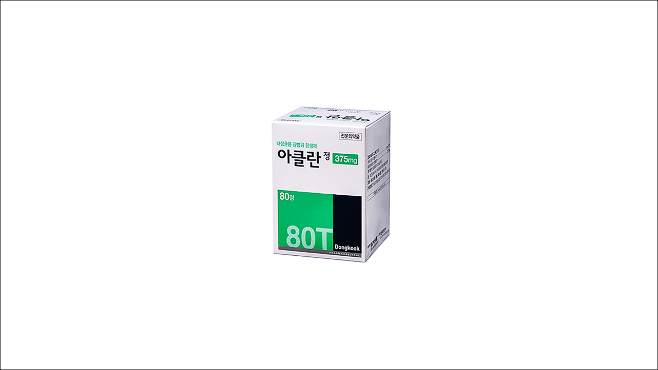항생제 아클란정 375mg(Aclan Tab. 375mg Dongkook)에 대해서 알아보겠습니다. 내성균용 광범위 항생제로 의사의 처방전이 있어야 약국에서 구입이 가능한 전문 의약품입니다. 항균작용을 나타냄으로써 세균에 의한 각종 감염증을 치료하는 약입니다.