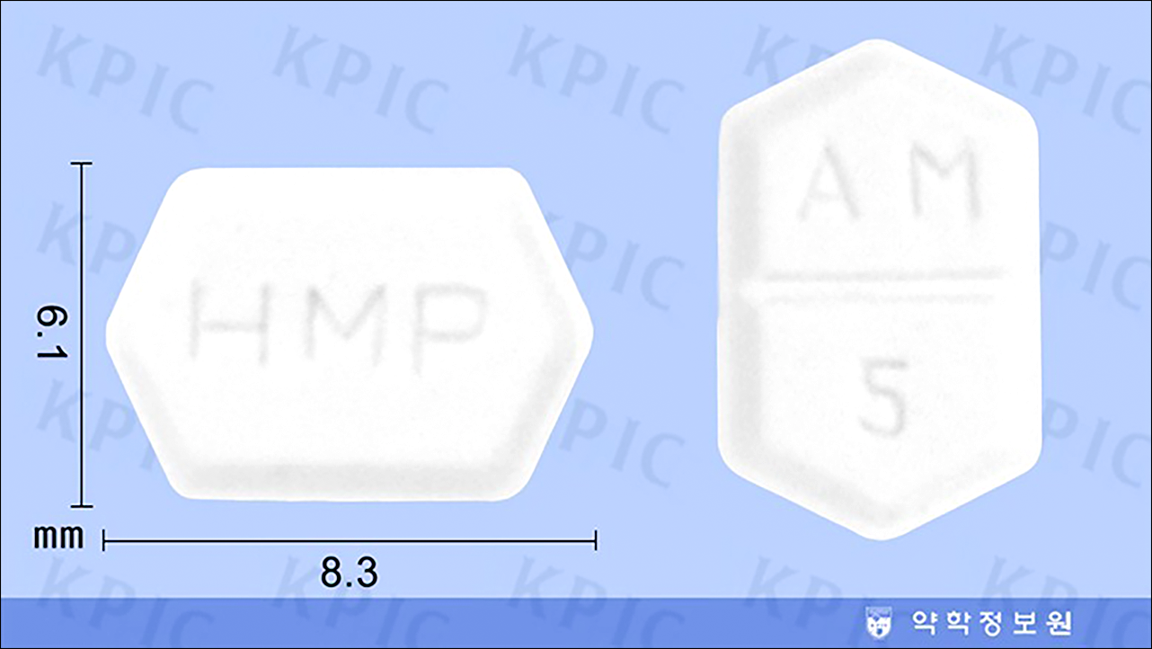 1. 아모디핀정 5mg에는암로디핀캄실산염 7.841mg이 함유되어 있습니다. 용량에 따라 2.5mg, 5mg이 있습니다.
