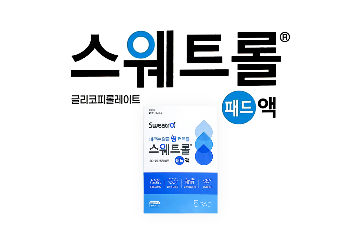 얼굴 땀억제제 스웨트롤 패드액(Sweatrol Pad Soln.)에 대해서 알아보겠습니다. 바르는 얼굴 다한증 치료제(지한제, 발한제)로 의사의 처방전이 없어도 약국에서 구입이 가능한 일반 의약품입니다. 국소적으로 얼굴의 땀분비를 억제함으로써 얼굴 다한증을 치료하는 약입니다.