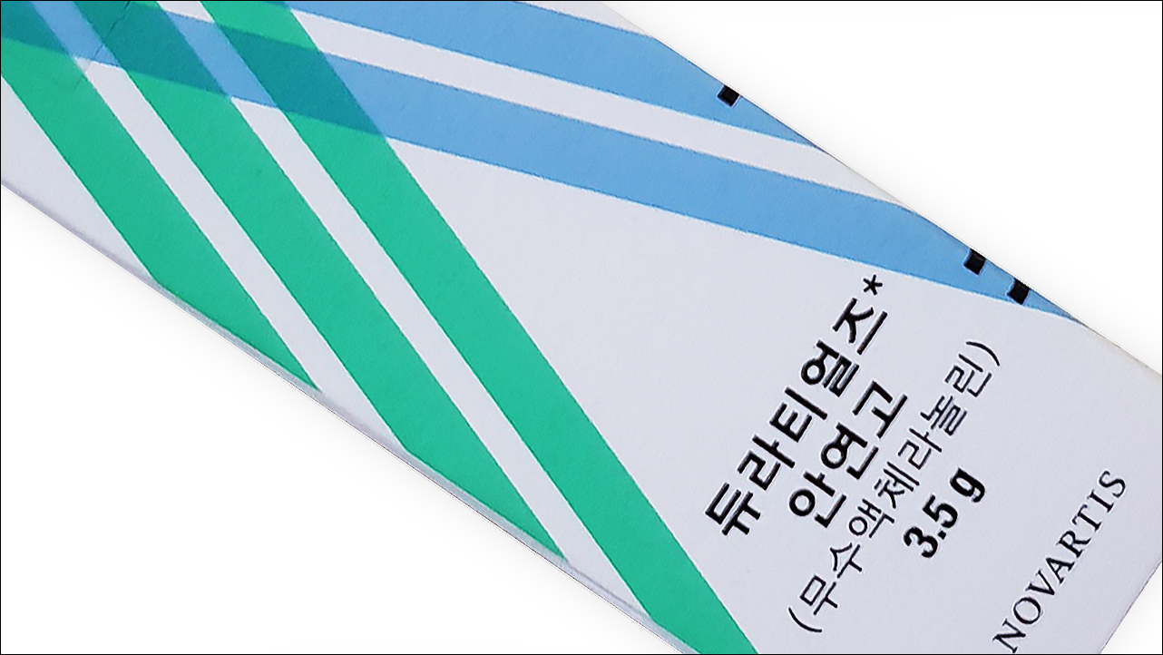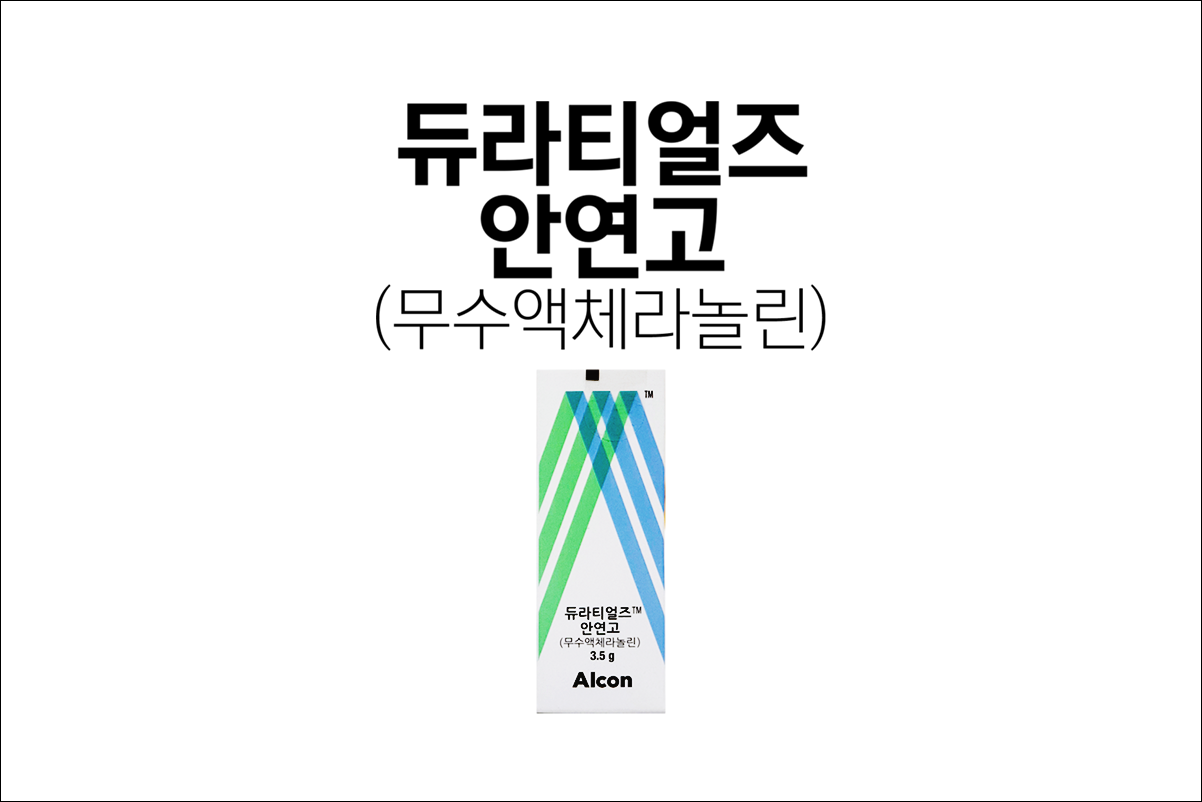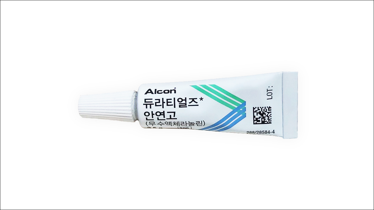눈 보호 윤활제 듀라티얼즈안연고(Duratears Ophthalmic Ointment)에 대해서 알아보겠습니다. 안과용 윤활제로 의사의 처방전이 없어도 약국에서 구입이 가능한 일반 의약품입니다. 눈을 보호하거나 윤활하기 위해 사용하는 안연고입니다.