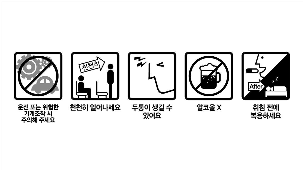 4. 어지러울 수 있으므로 운전, 위험한 기계조작 시 주의합니다.