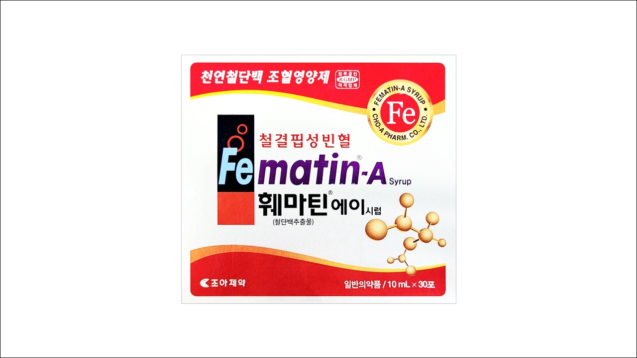 빈혈약 훼마틴에이 시럽(Fematin-A Syrup)에 대해서 알아보겠습니다. 철결핍성빈혈 치료제로 의사의 처방전이 없어도 약국에서 구입이 가능한 일반의약품입니다. 체내에 부족한 철분을 보충하여 적혈구의 생성을 촉진함으로써 빈혈을 치료하는 약입니다.
