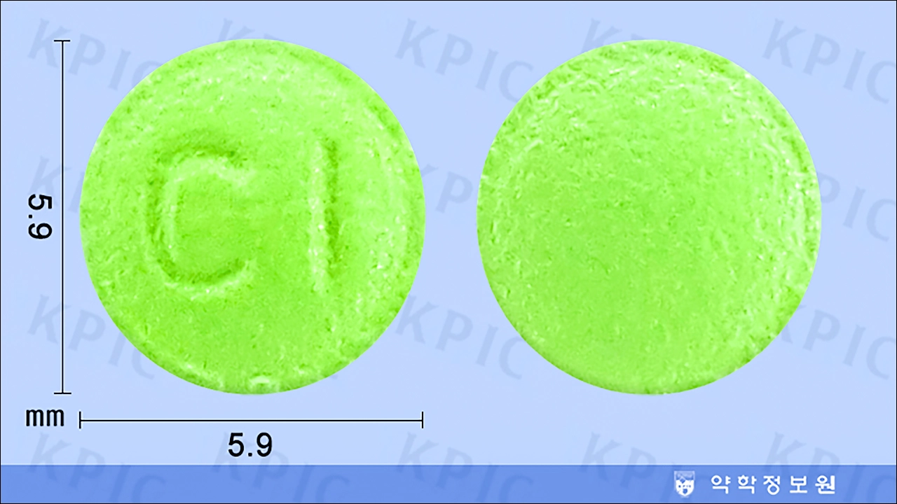 | 성상 | 녹색의 원형 장용성필름코팅정 |