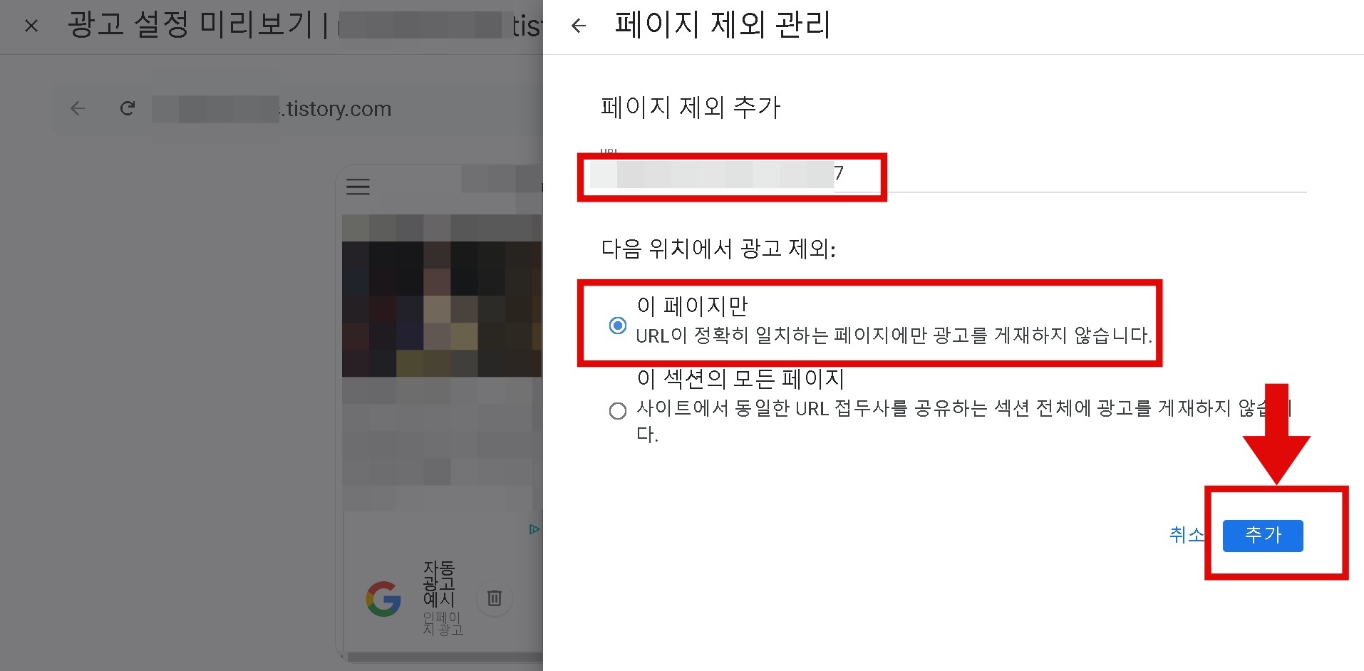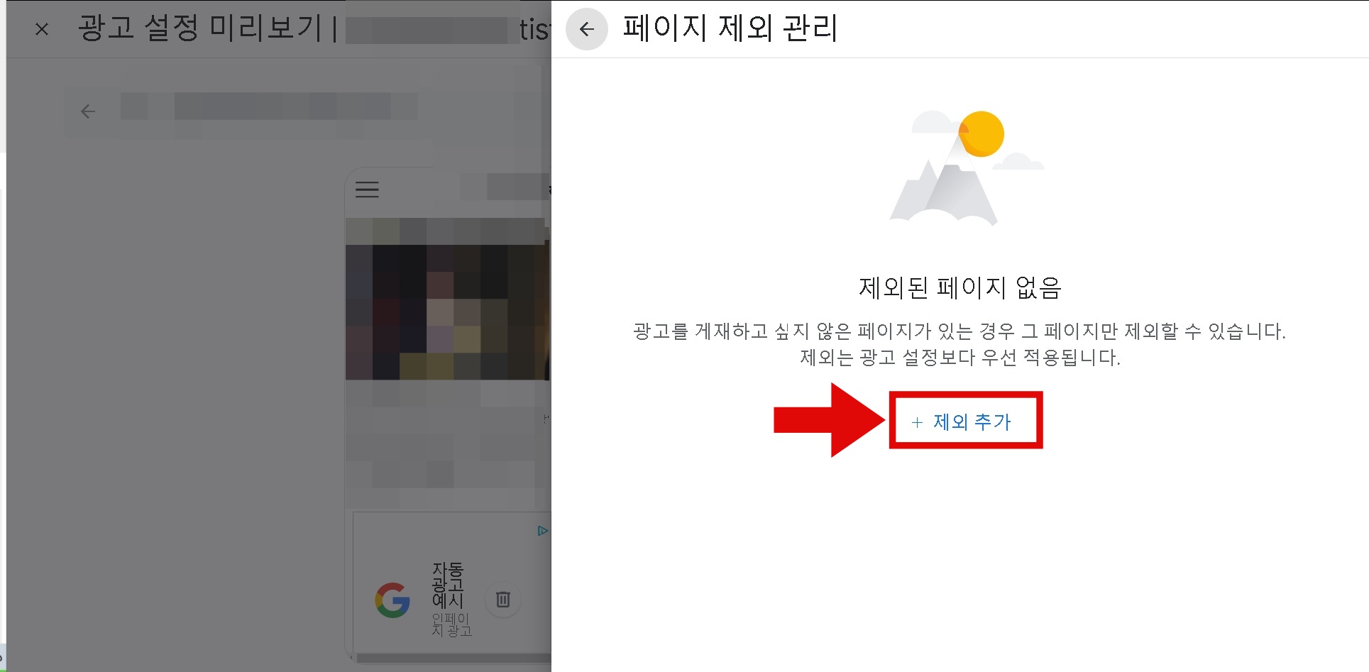 자동 광고가 제외될 페이지가 맞다면