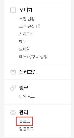 사진과 같이 'RSS 본문크기를 줄여주세요' '올바른 rss 가 아닙니다.' 떴습니다. 이런 경우 자신의 사이트 또는 블로그로 돌아와 '관리' 텝에 '블로그' 항목을 클릭합니다.