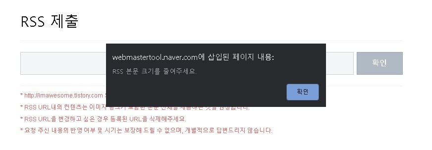 ●'RSS 본문크기를 줄여주세요' '올바른 rss 가 아닙니다.' 오류 해결 방법