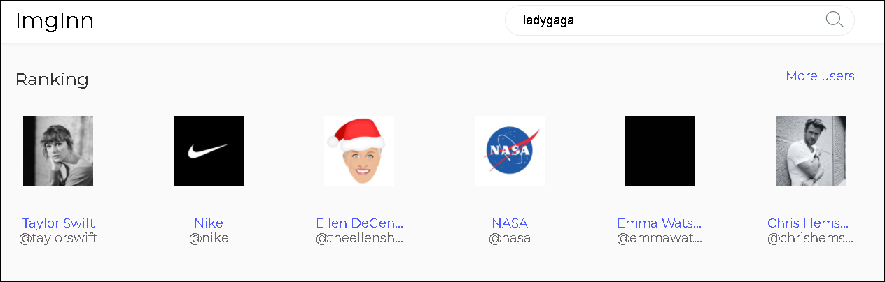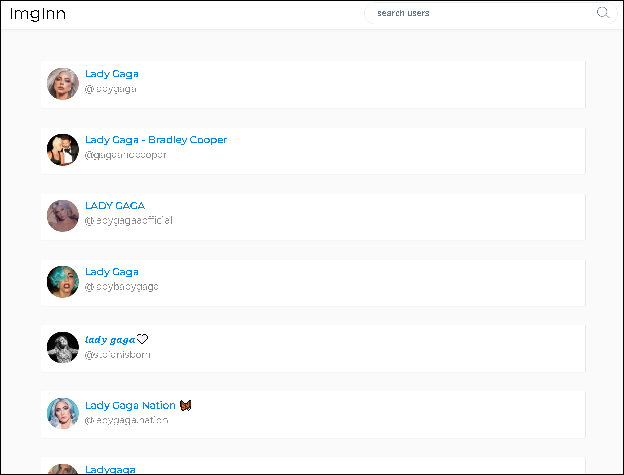 먼저 검색창에 계정명(username)을 넣습니다. 'ladygaga'라고 넣어 봤습니다.