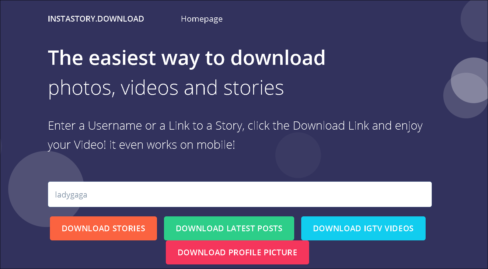 다음에 소개하는 방법은 사이트를 이용한 방법으로 간단히 사이트에 접속만 하면 로그인 없이 인스타 스토리를 보고 인스타 스토리에 올라와있는 동영상이나 사진 역시 다운로드할 수 있습니다. 당연히 보고자 하는 인스타그램 계정의 사용자 명(username)을 알고 있어야 합니다.