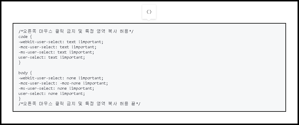 특정 영역에서 복사를 허용하게 하기 위해서는 다음의 소스코드를 이용해야 합니다. 아래 소스코드를 복사해 주시면 됩니다.