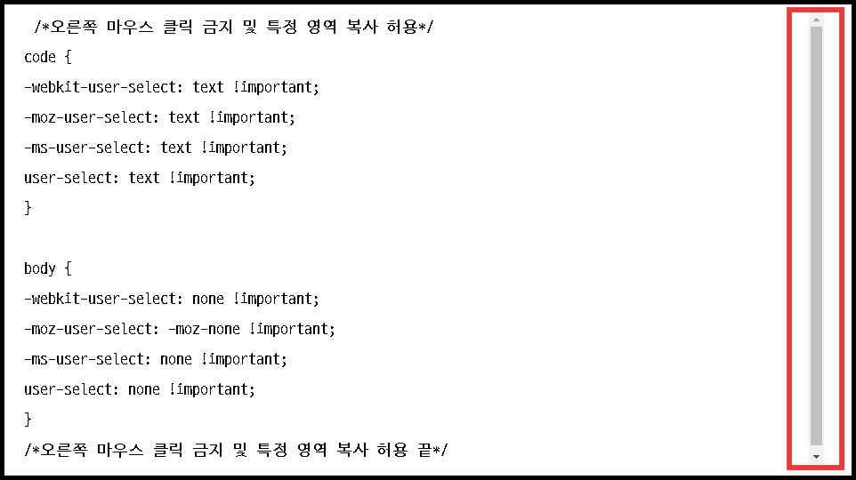 이제 본문을 확인해 보면 옆에 스크롤 바가 생기면서 이 영역안에 있는 글은 드래그해서 복사를 할 수 있게 되었습니다.