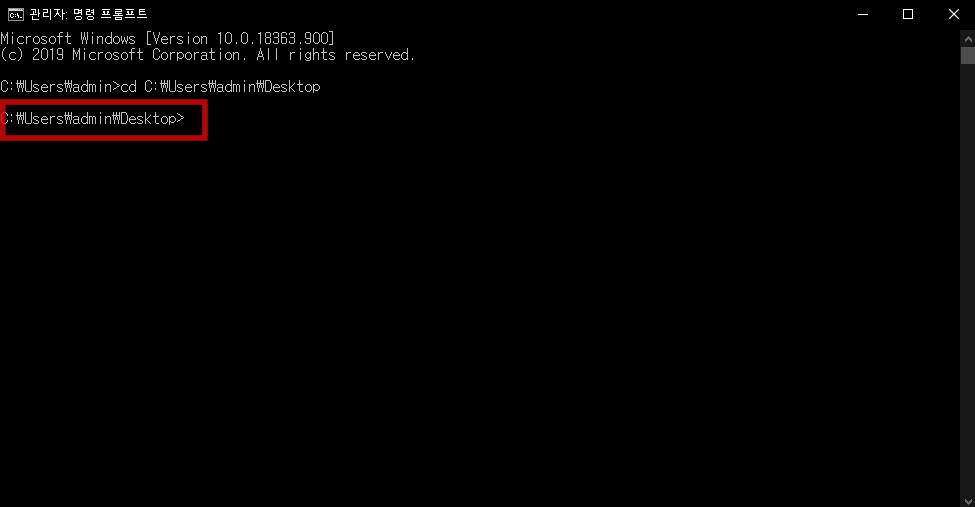그리고 Enter를 누르면 위와 같이 줄이 바뀌고 도수의 위치가 Desktop(바탕화면)이 으로 바뀌게 됩니다. 삭제하려고 하는 폴더가 바탕화면에 있었기 때문에 Desktop로 나온 것입니다.