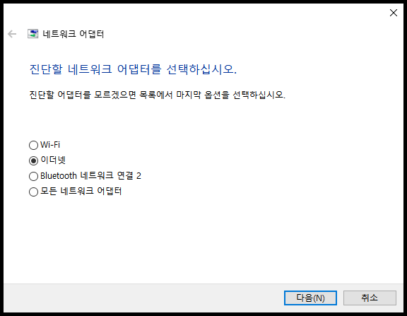 와이파이는 잘되는 이더넷이 '식별되지 않은 네트워크'가 뜨면서 인터넷에 연결이 되지 않는 증상 있습니다. 이런 증상을 해결하기 위해 가장 쉽게 문제를 알아볼 수 있는 방법은 네트워크 문제 해결사를 통해 현재 인터넷 상태를 진단해 보는 것입니다. 이렇게 진단을 해보니 발견된 문제에 '이더넷의 IP구성이 올바르지 않습니다.'라고 진단이 나옵니다. 이런 문제가 발생한 경우를 해결해 보도록 하겠습니다.