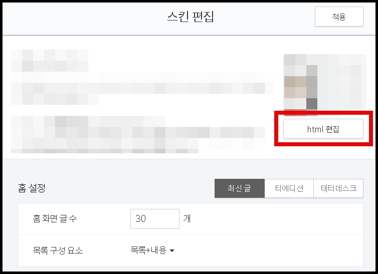 다음으로 스킨의 Html편집을 클릭해 줍니다.