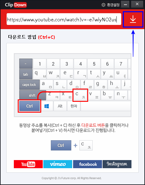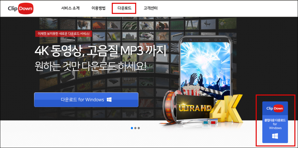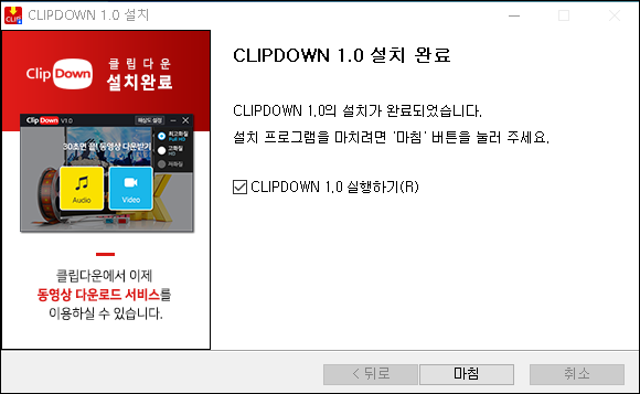 상단 메뉴의 다운로드 등을 클릭하면 클립다운 프로그램이 다운로드됩니다. 일반 프로그램들과 마찬가지로 설치를 쭉쭉해줍니다.