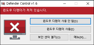 프로그램 개발자 홈페이지 : https://www.sordum.org/9480/defender-control-v1-6/