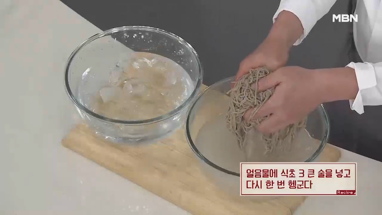 ▶식초를 넣어 헹구면 글루텐이 형성돼 더욱 쫄깃하고 잘 붇지(불지) 않습니다. 식초를 넣으면 불지 않고 탈력 있는 메밀면을 만들 수 있습니다.