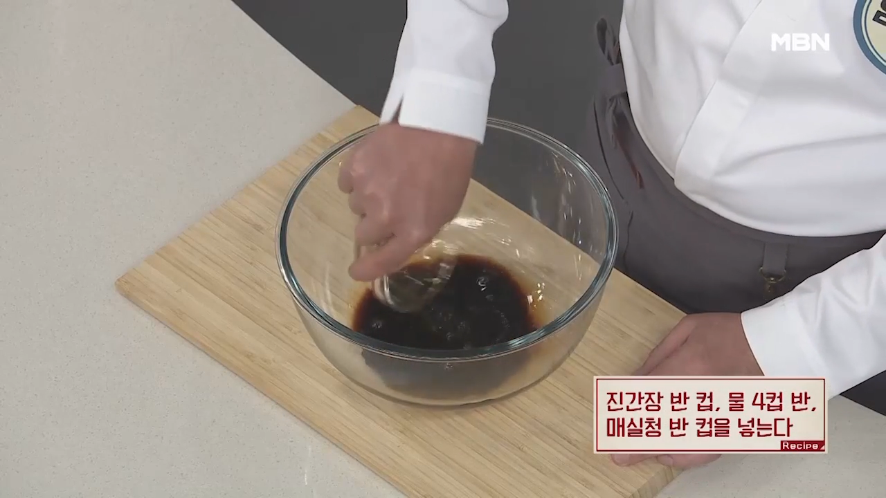 ① 진간장, 물, 매실청 넣기