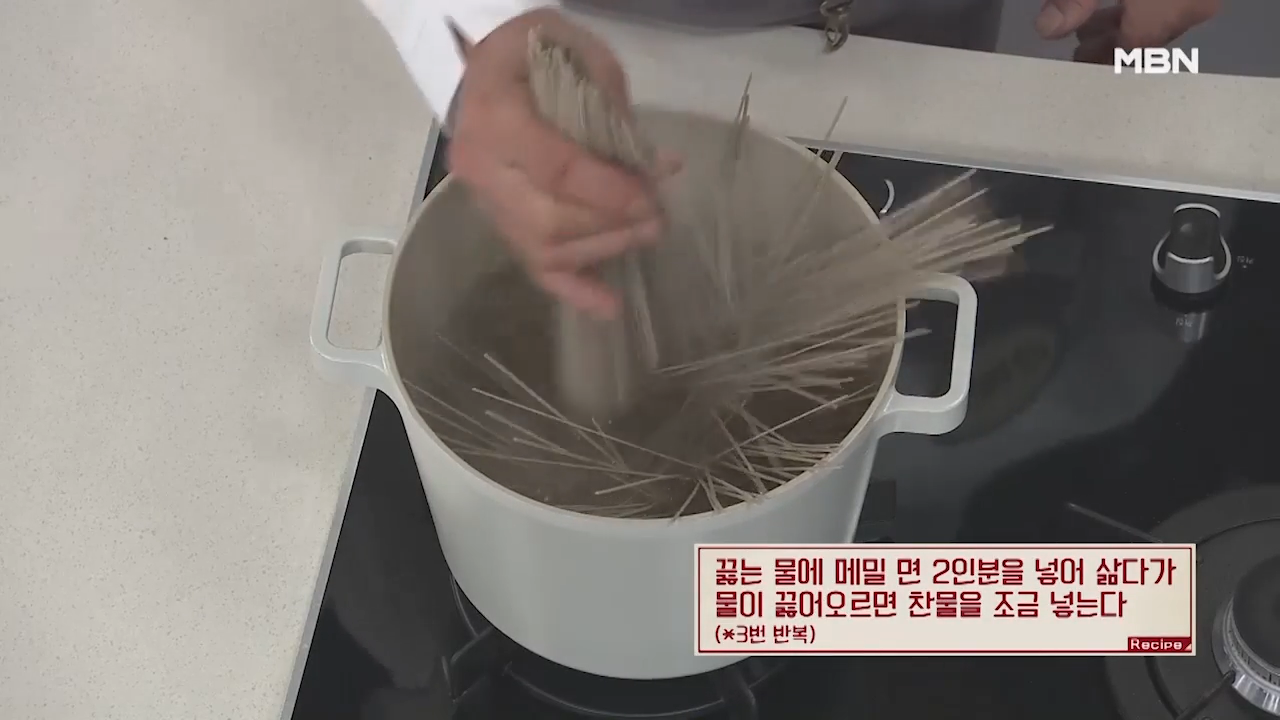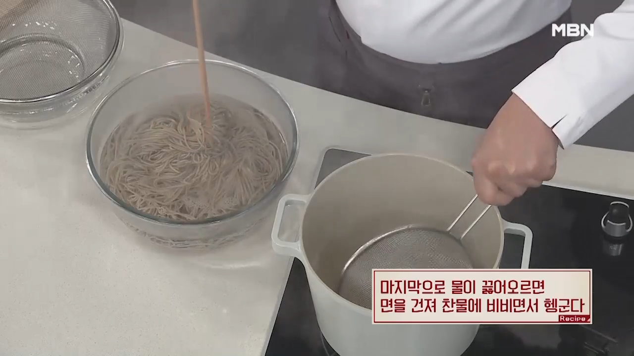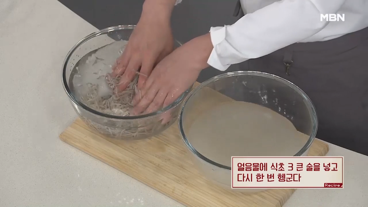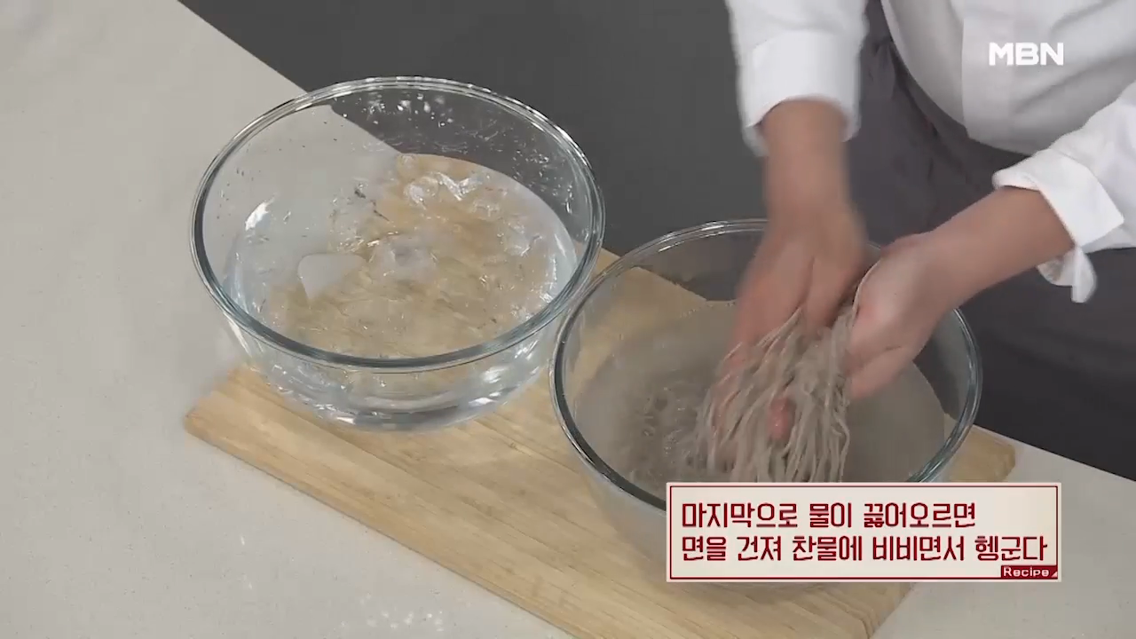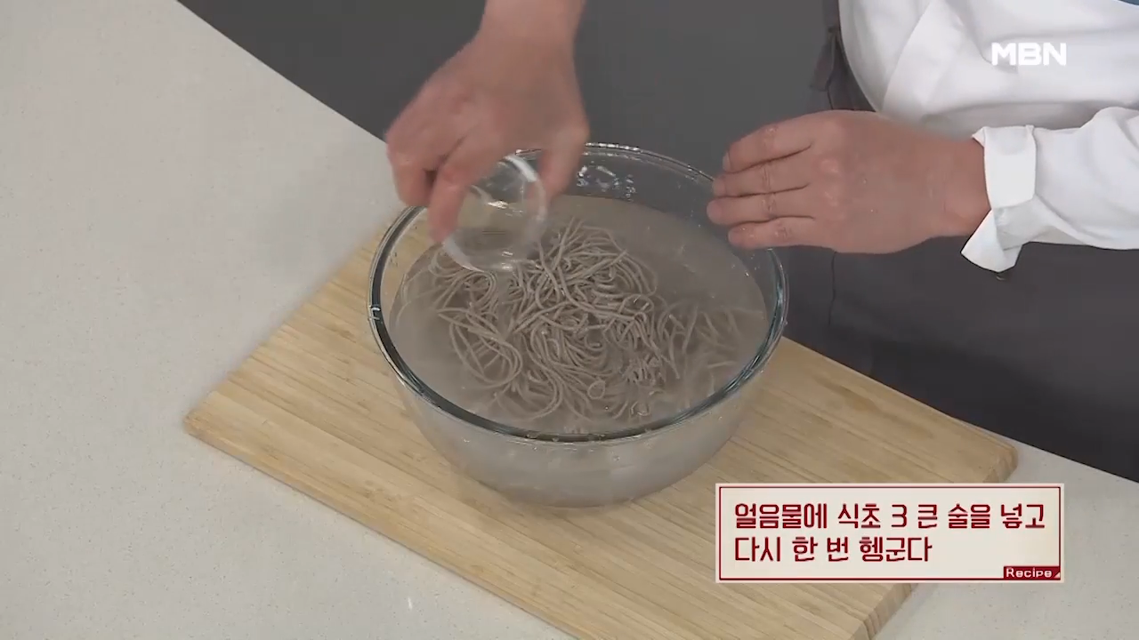 ※식초를 넣어주면 메밀 면의 면발이 쫄깃해지고 서로 달라붙지 않게 됩니다.