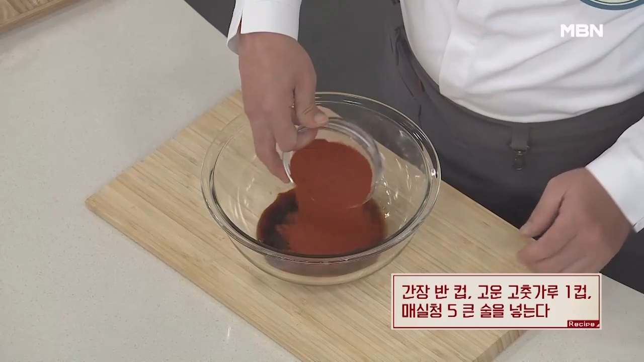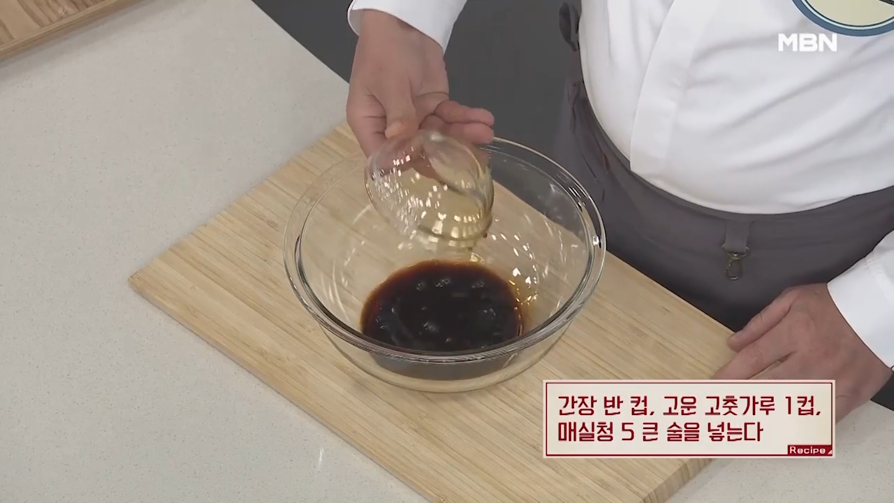① 진간장, 고운 고춧가루, 매실청 넣기