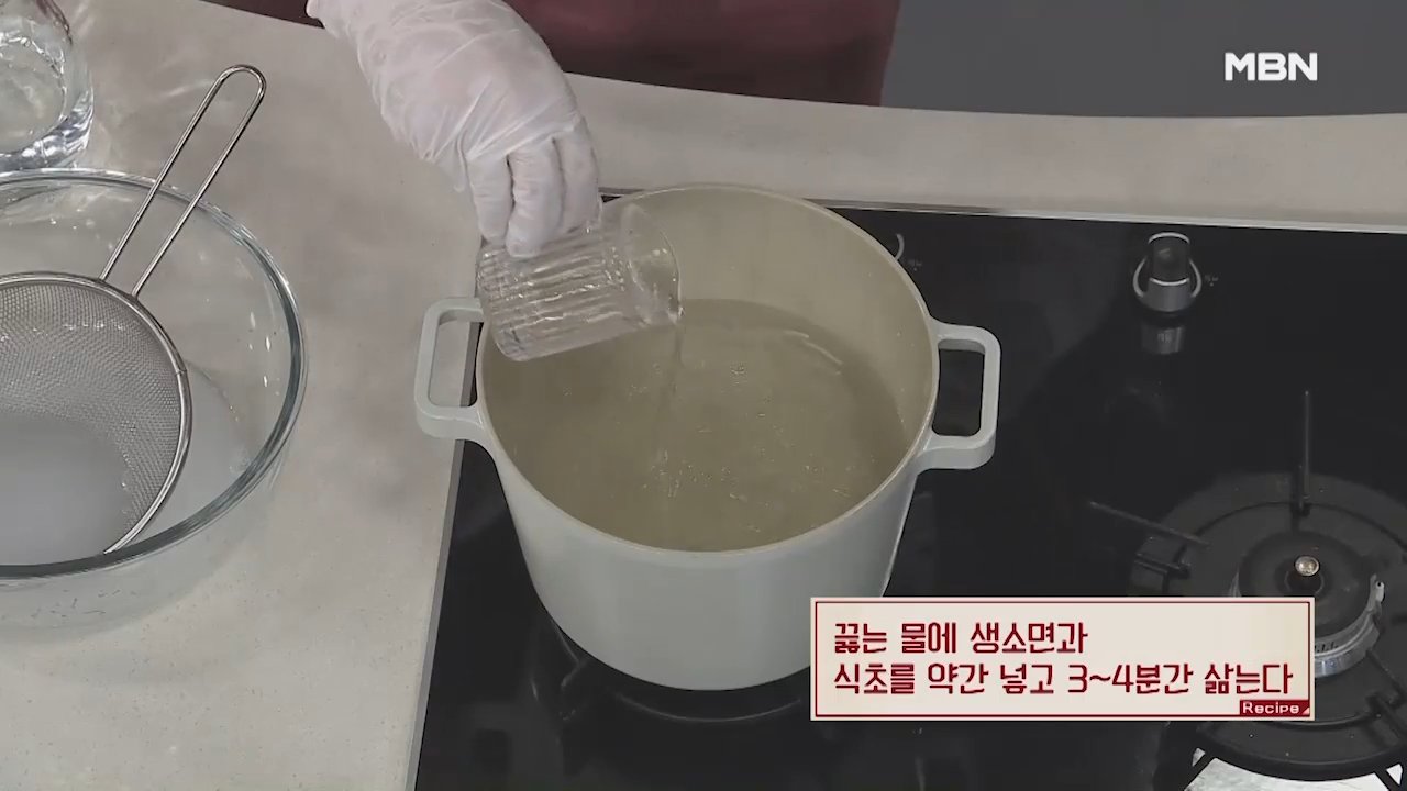 식초를 넣으면 글루텐이 활성화돼 면발이 쫄깃해집니다.