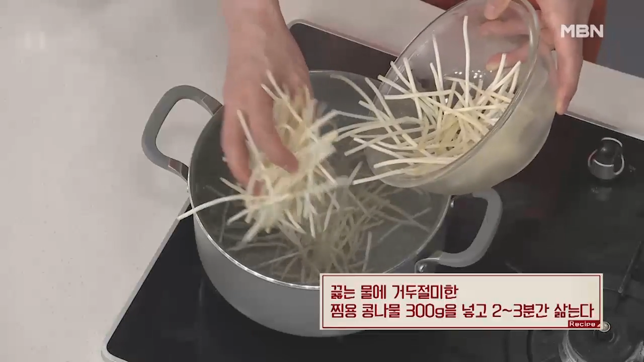 끓는 물에 거두절미한 찜용 콩나물 300g을 넣고 2~3분간 삶는다.