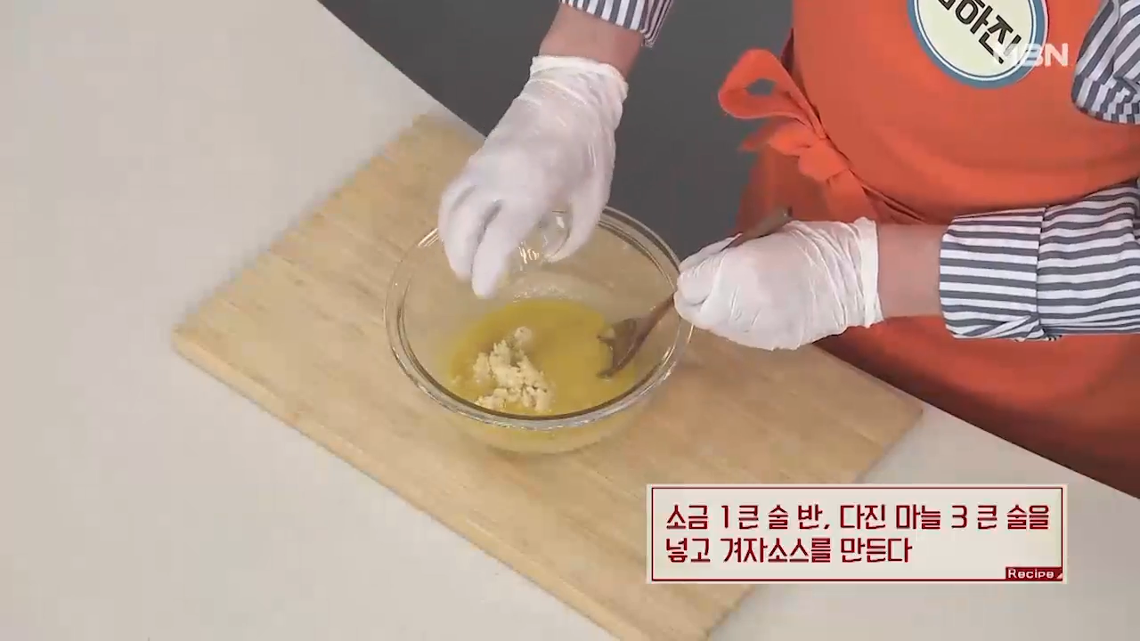 소금 1 큰술 반, 다진 마늘 3큰술을 넣고 겨자소스를 만들어 줍니다.
