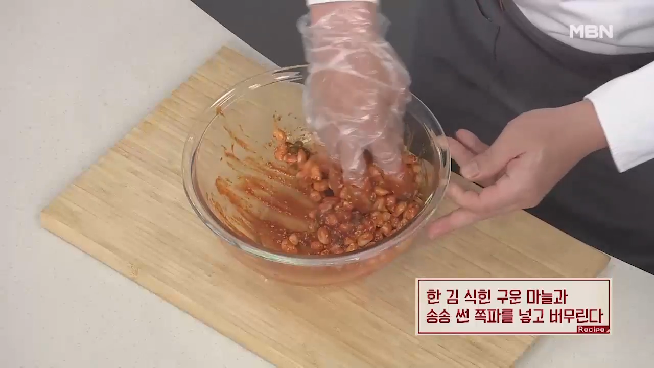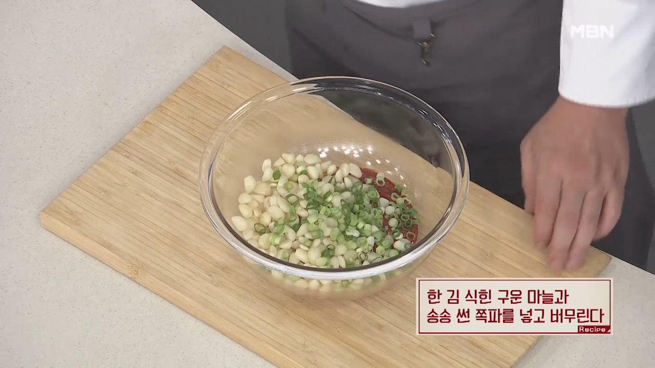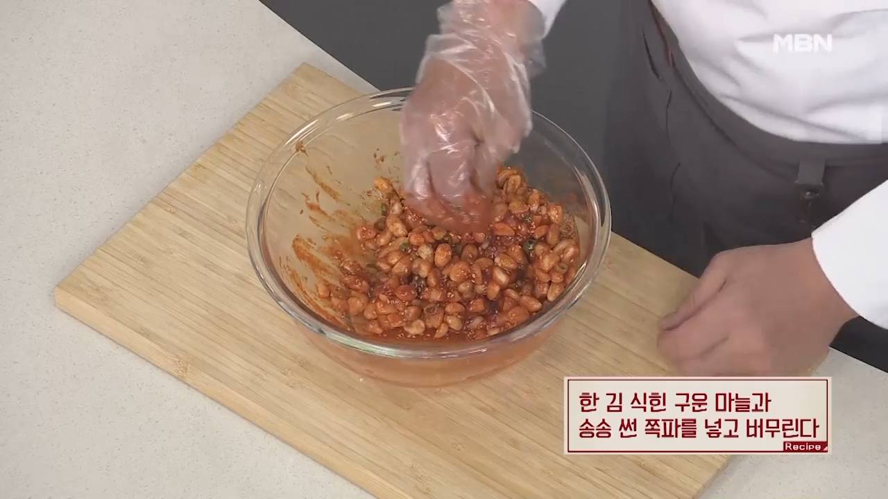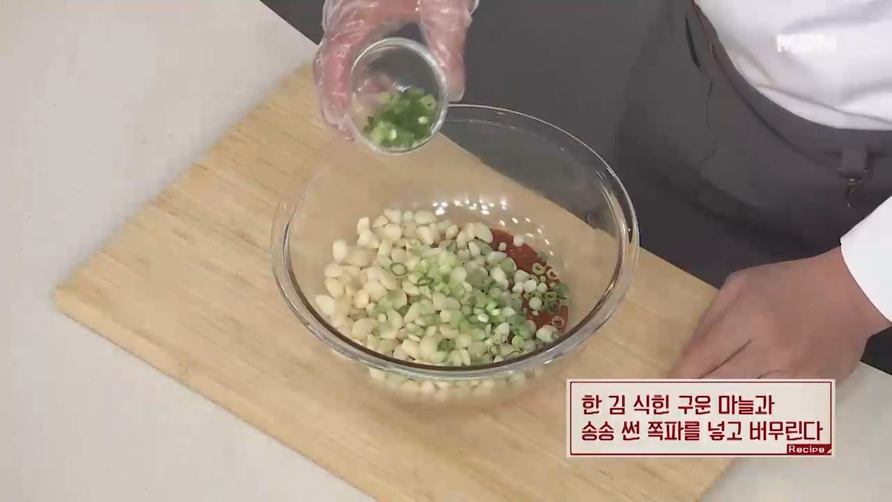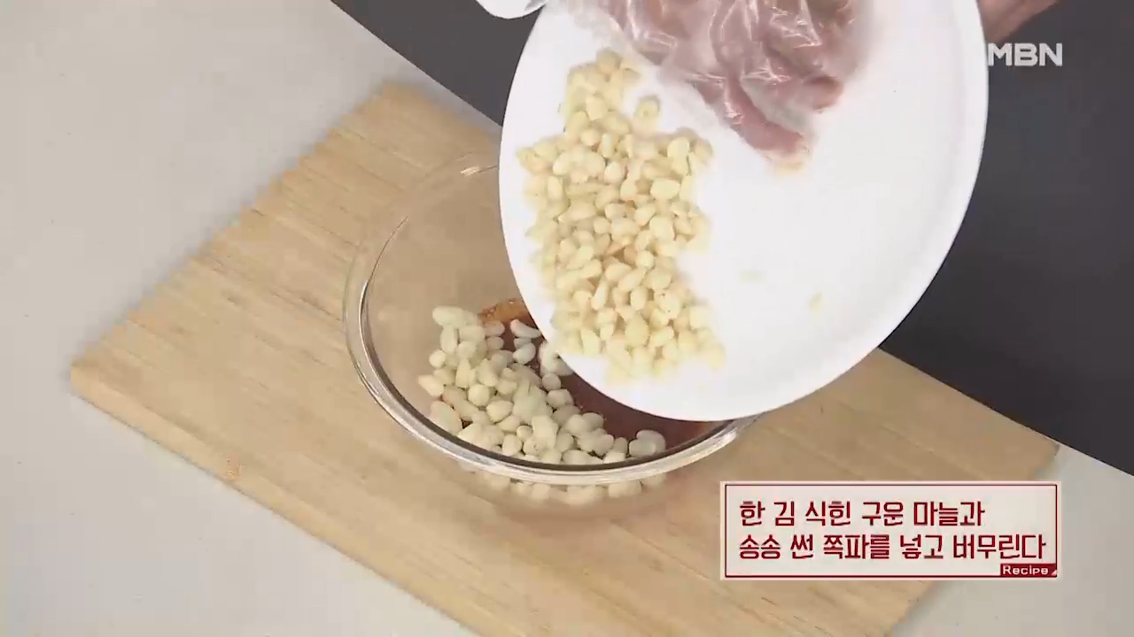 마지막으로 한 김 식힌 구운 마늘과 송송 썬 쪽파를 넣고 버무려 줍니다.