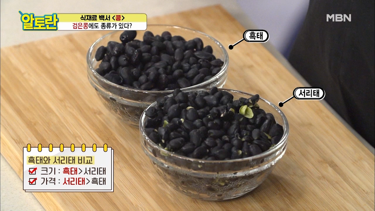 흑태가 저렴하고 크기도 크지만 서리태가 다른 콩보다 비교적 달고 고소하기 때문에