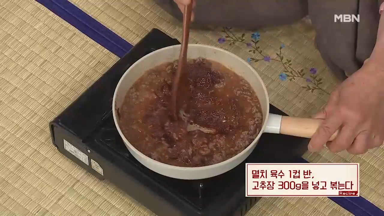 ▶멸치 육수 1컵 반, 고추장 300g을 넣고 볶아 줍니다. 멸치 육수는 취향에 따라 농도를 보며 가감해줍니다.