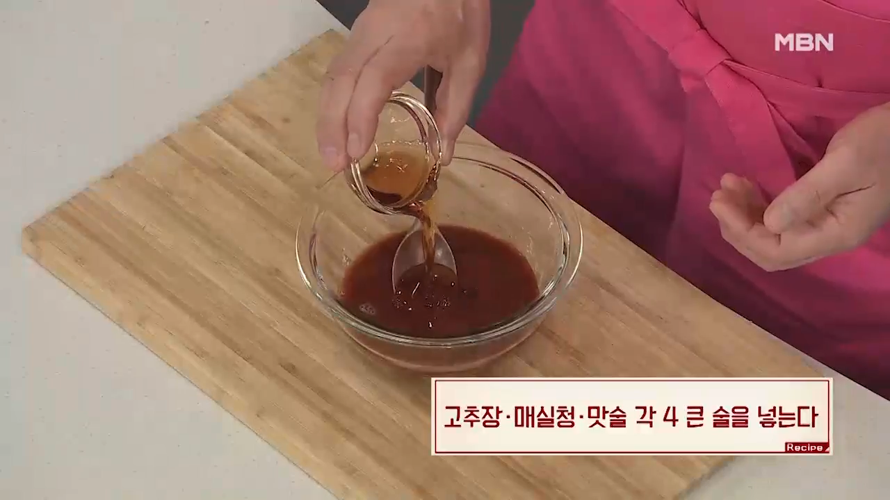 ▶고추장 4큰술, 매실청 4큰술, 맛술 4큰술을 넣어줍니다.