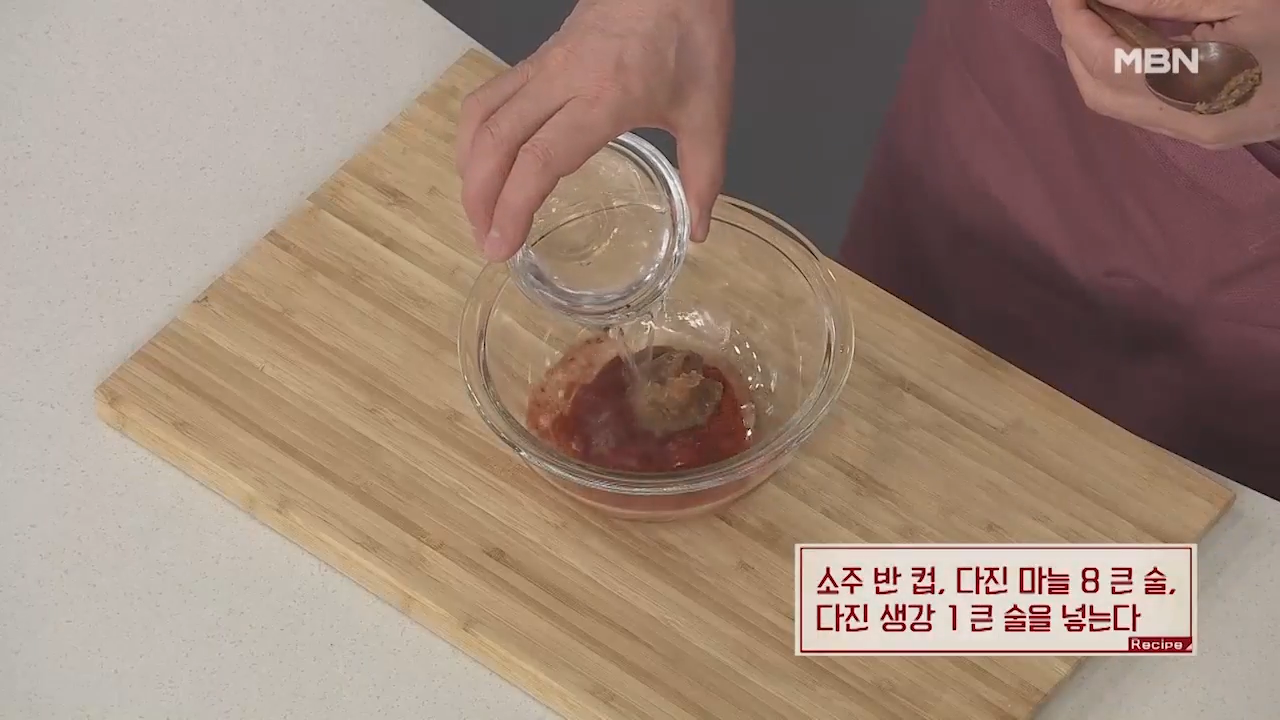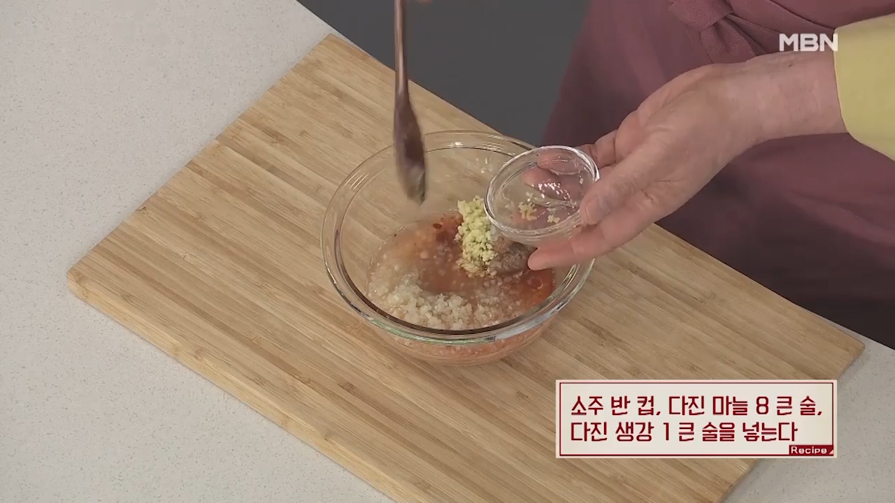 ▶소주 반 컵, 다진 마늘 8큰술, 다진 생강 1큰술을 넣어줍니다.