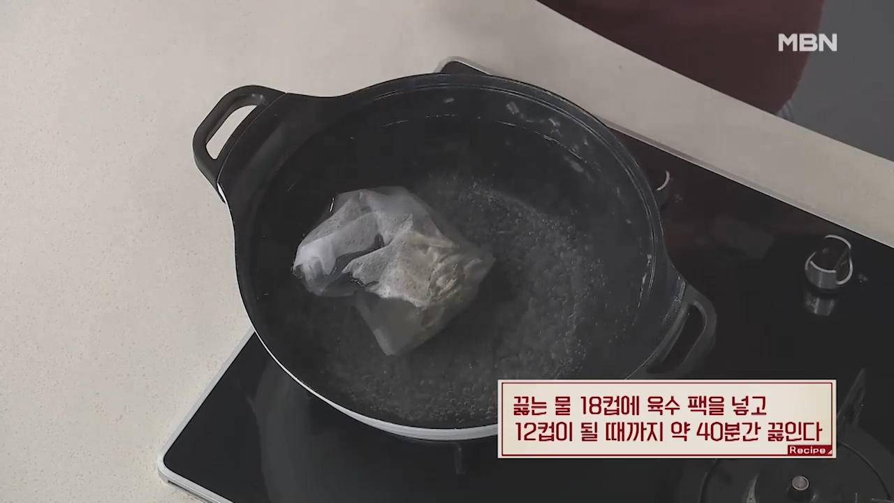 ▶끓는 물에 18컵에 육수 팩을 넣고 12컵이 될 때까지 약 40분간 끓여줍니다.