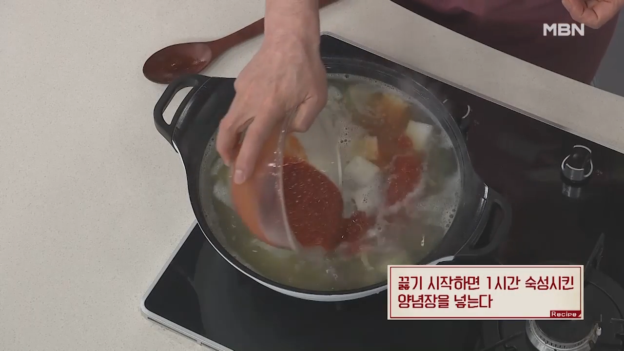 ▶끓기 시작하면 1시간 숙성시킨 양념장을 넣어 줍니다.