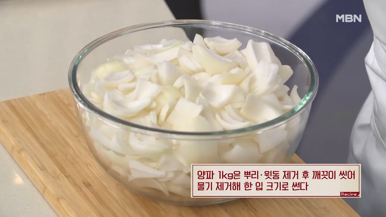 ▶한입 크기로 썬 햇암 양파 1kg(5~7개)을 준비합니다.