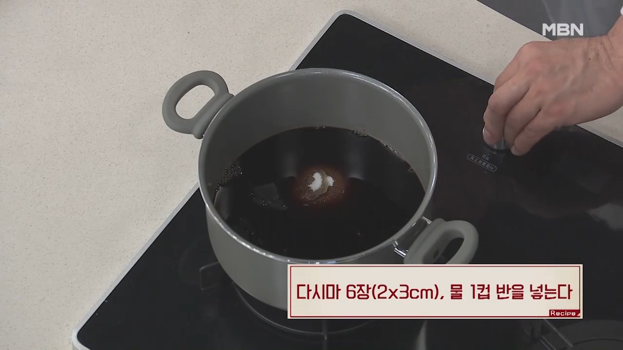 ▶다시마 6장(2X3cm), 물 1컵 반을 넣어 줍니다.